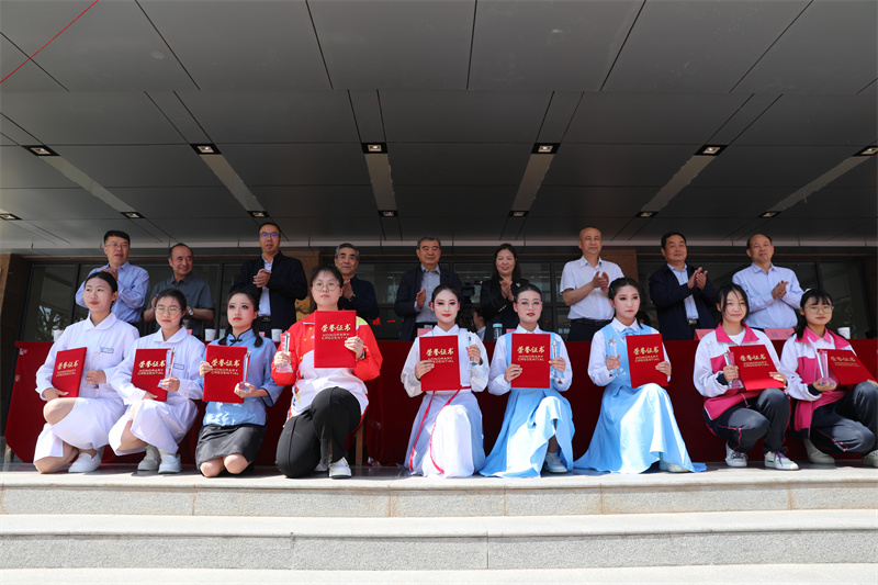 在授帽环节,与会领导和公司教师共同为天水师范公司开云2023级护理专业员工和天水市卫生公司2022级中专班员工代表戴上了圣洁的燕帽。